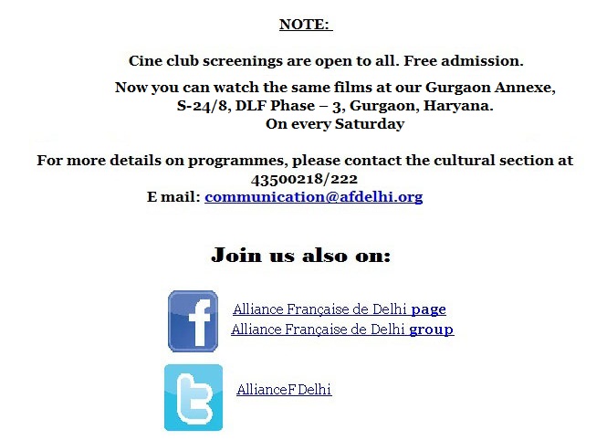 City: New Delhi Location: M.L. Bhartia Auditorium, Alliance Française de Delhi Date: Fri, 2011/08/26 -5:30pm – 7:30pm Price: Free admission, open to all Category: Film screening Duration: 95 minutes […]