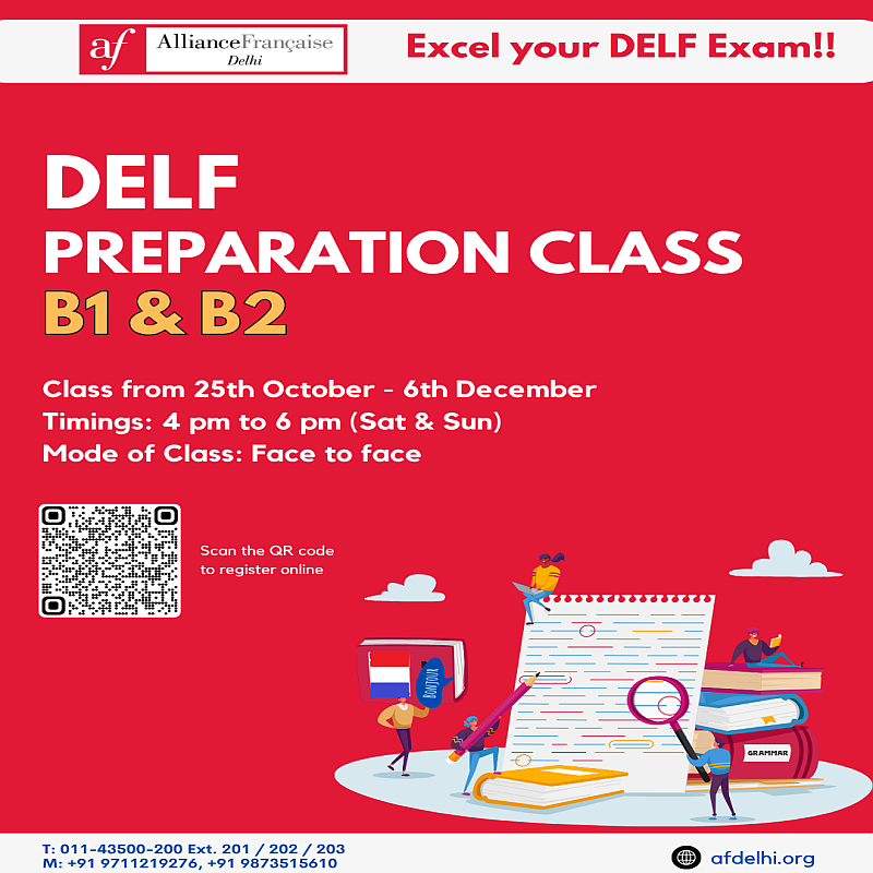 October 2, 2025October 25, 2025DELF DALF Enroll Today: DELF (B1/B2) Preparation Classes Oct 2025 Join DELF (B1/B2) Preparation classes Oct 2025 for a complete preparation of your exam. Course includes exam overview, practice over sample exercises […] Read more