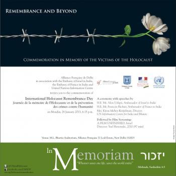 Event: International Holocaust Remembrance Day 2016City: DelhiDate: Thu, 2012/02/16 – 6:30pmPrice: Free entry – Rights of admission reserved Alliance Française de Delhi, […]